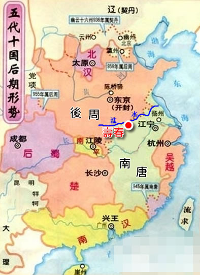 魏晉南北朝後,壽春作為兵家必爭之城甚至謀反基地的「高光時刻」算是過去了,比較尚值一提的恐怕只有關乎五代後周滅南唐的「壽州之戰」——