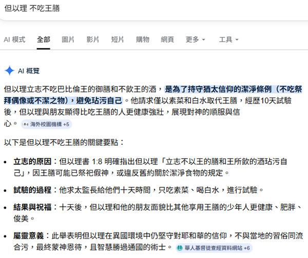 論到但以理的「不吃王膳」,坊間網上隨處可見充滿「本質主義謬誤」的論述,結果連谷歌AI都被「調教」成這個樣子——